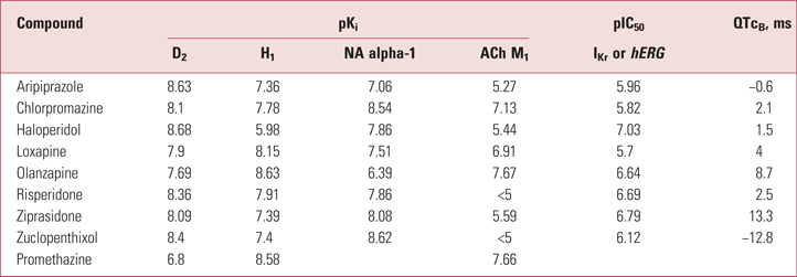 TABLE 2 Binding profiles,a and QT changes at therapeutic doses, for antipsychotics and promethazine