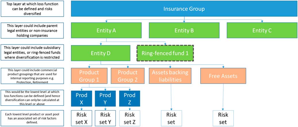 1.1.2. One of the most fundamental choices to be made in the construction of any economic capital model is how to aggregate together the capital requirements for the individual risk factors and take account of the effects of diversification. The reported value of the effects of diversification is a balancing item. It depends on the final aggregate economic capital requirement and the level of granularity at which the standalone capital requirements for initial “pre-diversification” risk factors are presented, as well as assumptions made regarding the dependency between movements in those risk factors; the undertaking’s exposures to those risk factors; and how they interact to compound or reduce losses. The reported effect of diversification is therefore, taken in isolation, not necessarily a meaningful figure. Nevertheless, starting from the level at which risk factors are typically modelled separately, the effects of diversification can be very significant. Under the ICAS framework, the effect of diversification was typically one of the largest single items in the build-up of the ICA of a typical life insurer, representing a reduction of 40%–60% of the sum of individual capital requirements. For example, the KPMG LLP (2015) indicates that, for the majority of firms, the effects of diversification represented a reduction of 41%–51% in capital requirements. The survey covered 29 respondents, all of which were UK life insurers, though not all of which applied to use an Internal Model for the calculation of their solvency capital requirement (SCR) under Solvency II. However, this result is consistent with the range quoted in other industry surveys whose results are not publicly available. At the time of writing, it is not yet clear what level of granularity those firms using an Internal Model to calculate their SCR will use for the presentation of the effects of diversification in public reporting.