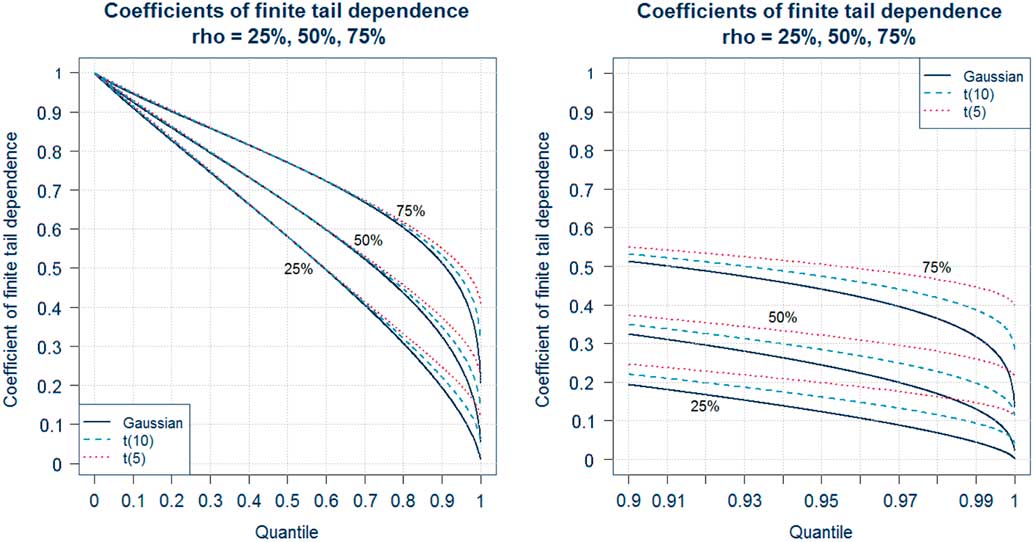 We have assumed that the reader is familiar with the basics of copulas. There are numerous good references. McNeil et al. (Reference McNeil, Frey and Embrechts2015), Cherubini et al. (Reference Cherubini, Luciano and Vecchiato2004), Joubert & Dorey (Reference Joubert and Dorey2005), Sweeting & Fotiou (Reference Sweeting and Fotiou2013) and Shaw et al. (Reference Shaw, Smith and Spivak2011) provide accessible accounts in a finance context. Nelsen (Reference Nelsen1998) and Joe (Reference Joe2015) are standard, but more technical, reference works. The paper by Demarta & McNeil (Reference Demarta and McNeil2005) provides a comprehensive review of the Student’s t copula while the paper by Aas (Reference Aas2004) provides a practical introduction to simulation from copulas.