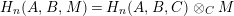 $H_{n}(A,B,M)=H_{n}(A,B,C)\otimes _{C}M$