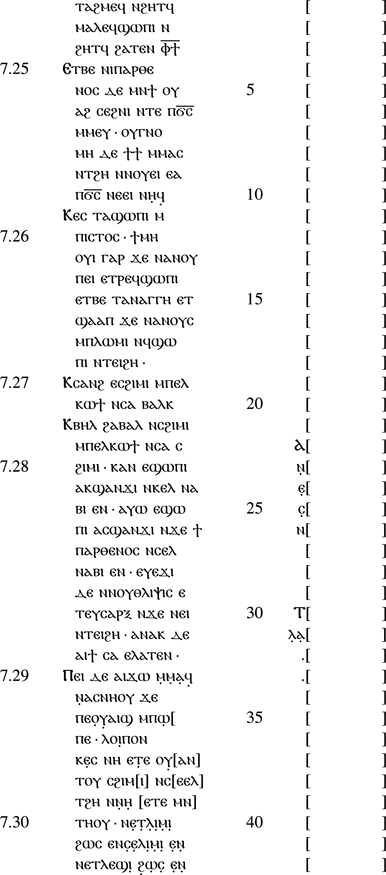 25 H. Thompson, ed., The Coptic Version of the Acts of the Apostles and the Pauline Epistles in the Sahidic Dialect (Cambridge: Cambridge University Press, 1932) 129.