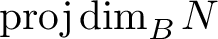 $$ \begin{align*} \operatorname{edim} A - \operatorname{edim} \overline{B} &= \operatorname{proj\,dim}_A\overline{B} \\ & = \operatorname{proj\,dim}_AN \\ & \le \operatorname{edim} A - \operatorname{edim} B \\ & \le \operatorname{edim} A - \operatorname{edim} \overline{B} . \end{align*} $$