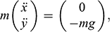 is the mass of the sphere; and the two dots on x and y indicate the second derivative with respect to time (and recall that this second derivative of a position is acceleration, and so