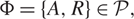 $\Phi=\{A,R\}\in\mathcal{P},$