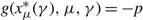 $$\delta (x,\mu ) = \left\{ {\matrix{ {g(x,v,\gamma ),} & {x \le \gamma /h,} \cr { - p,} & {x \ge \gamma /h,} \cr } } \right.$$