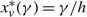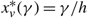 $x_v^*(\gamma ) = \gamma /h + {\sigma ^2}(1 + w(v,\gamma ))/2v = \gamma /h$