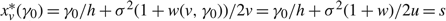 $x_v^*({\gamma _0}) = {\gamma _0}/h + {\sigma ^2}(1 + w(v,{\gamma _0}))/2v = {\gamma _0}/h + {\sigma ^2}(1 + w)/2u = s$