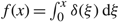 $f(x) = \int_0^x \delta (\xi ) {\rm{d}}\xi $