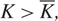 $K>\overline{K}$, a threshold defined by the problem parameters.