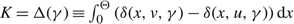 Since δ(⋅, u) = δ(⋅, v), δ satisfies (22) for each K ≥ 0. We argue that