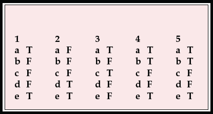 | c | F | c | F | c | T | c | F | c | F |