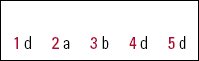 1 d | 2 a | 3 b | 4 d | 5 d |