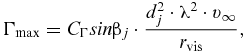 {\Gamma}_{\rm max}& = &{C}_{\Gamma } sin {\beta }_{j} \cdot \frac{{d_{j}^{2}} \cdot {{\lambda}^2} \cdot {v}_{\infty}}{{r}_{\rm vis}},\\