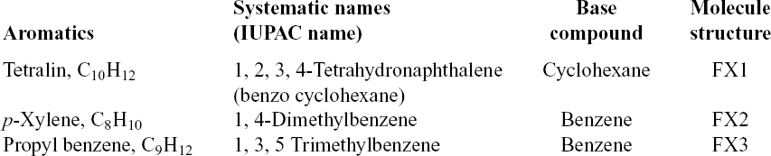 Graham et al.(Reference Graham, Rahmes, Kay, Belieres, Kinder, James, Millet, Ray and Vannice6) and other studies suggested the minimum aromatic content in a fuel is about 8% on average. This percentage is obtained from vigorous research, but it can go up and down in the future, depending on the types of fuels and aromatics used. It is considered as a safe minimum level of aromatics(Reference Hileman and Stratton1). Besides that, the aromatic content in kerosene ranges from 8% to 22%. In common jet engine fuel, the high aromatic content encourages the seals to swell, thus providing more protection from leakage. In the case of renewable fuel, the seals tend to extract since it contains no aromatics. These problems can be overcome by adding aromatics to the fuel or by blending it with conventional jet fuels.