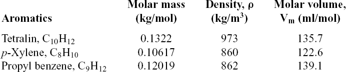 To determine the swelling effect, the P/Po values were calculated from the data. The higher the P/Po value, the higher the swelling effect of the elastomer. According to Graham et al.(Reference Graham, Striebich, Minus and Harrison12), the smaller the size or molar volume of the aromatic, the higher the rate of seal swelling. It can be referenced that the greatest seal swelling occurs in fuel and aromatics with small molar volume and strong hydrogen bonding potential and polarity(Reference Matthew, Edwin, Graham and Minus7). Table 5 lists the properties of aromatics used in this study. The molar volume of each aromatic can be calculated using Equation 2, which depends on its base compound(Reference Panidi, Trofimov and Lepikhina15):