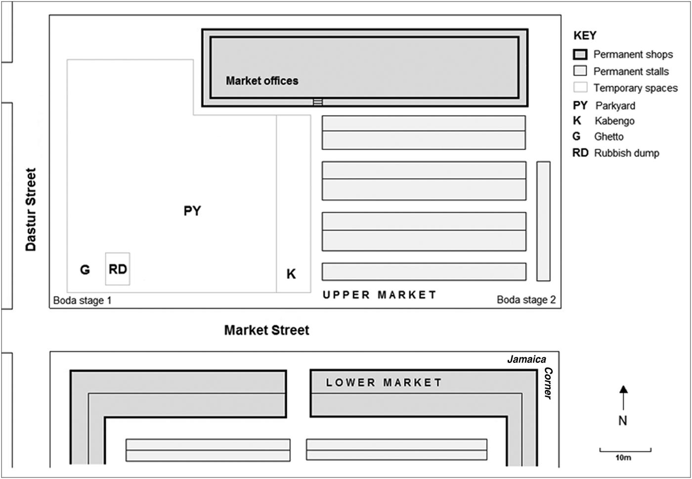 Figure 1 Map of upper Nakasero market, central Kampala.
