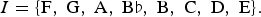 $$I = \lcub \hbox{F}\comma \; \hbox{G}\comma \; \hbox{A}\comma \; \hbox{B}\flat\comma \; \hbox{B}\comma \; \hbox{C}\comma \; \hbox{D}\comma \; \hbox{E}\rcub . $$