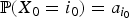 1. 1. ${\opf P}\lpar X_{0} = i_{0}\rpar= a_{i_{0}} $;