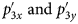 $p_{3x}^{\prime} \;{\rm and\;}p_{3y}^{\prime}$ with a normalized range