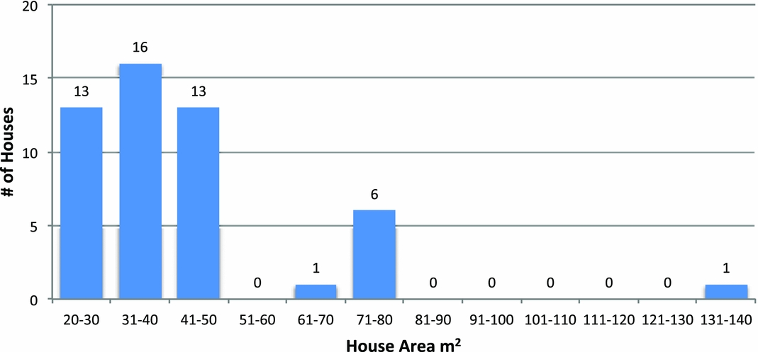 In addition to the cemeteries, approximately 50 house depressions, a possible dance area, and a possible sweat lodge have been documented at CA-SCRI-333, among other features. The house depressions range between 20–133 m2 in area each and are situated on a series of five terraces that radiate around the southern, western, and eastern portions of the mound (Figures 1 and 9). The largest depression (Structure 1, diameter = 13 m) is near the center of the mound at the highest elevation, not far from the three cemeteries. This depression had the best visibility of the surrounding settlements on Santa Cruz Island, the eastern part of Santa Rosa Island, and San Miguel Island. Hierarchy in the sizes of houses is clear (Figure 9). No occupational floors have been encountered yet. However, a highly distinctive lens (Lens C) was identified in three house depressions, and does not occur in deposits outside of house depressions. It is not a continuous stratum (Figure 4), but a lens consisting of light-colored ash with few to no artifacts. In Trench 2, fire-reddened soil was noted in a few places immediately beneath Lens C, suggesting that something burned in situ. This lens can be meters in length, and therefore does not appear to be a hearth, but a larger burned feature. Based on these data, I interpret Lens C as the remains of burned thatch (originally on the roofs of the structures) and possibly woven mats or sea grass that covered the floors. Most archaeological examples of domestic structures in the region lack clay floors, rock rings, and other distinguishing features, although exceptions exist (Gamble Reference Gamble1995).
