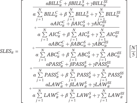 We then compute a SLES for each state legislator (i) in each legislative term (t) within each legislative chamber based on a weighted average of these fifteen metrics: