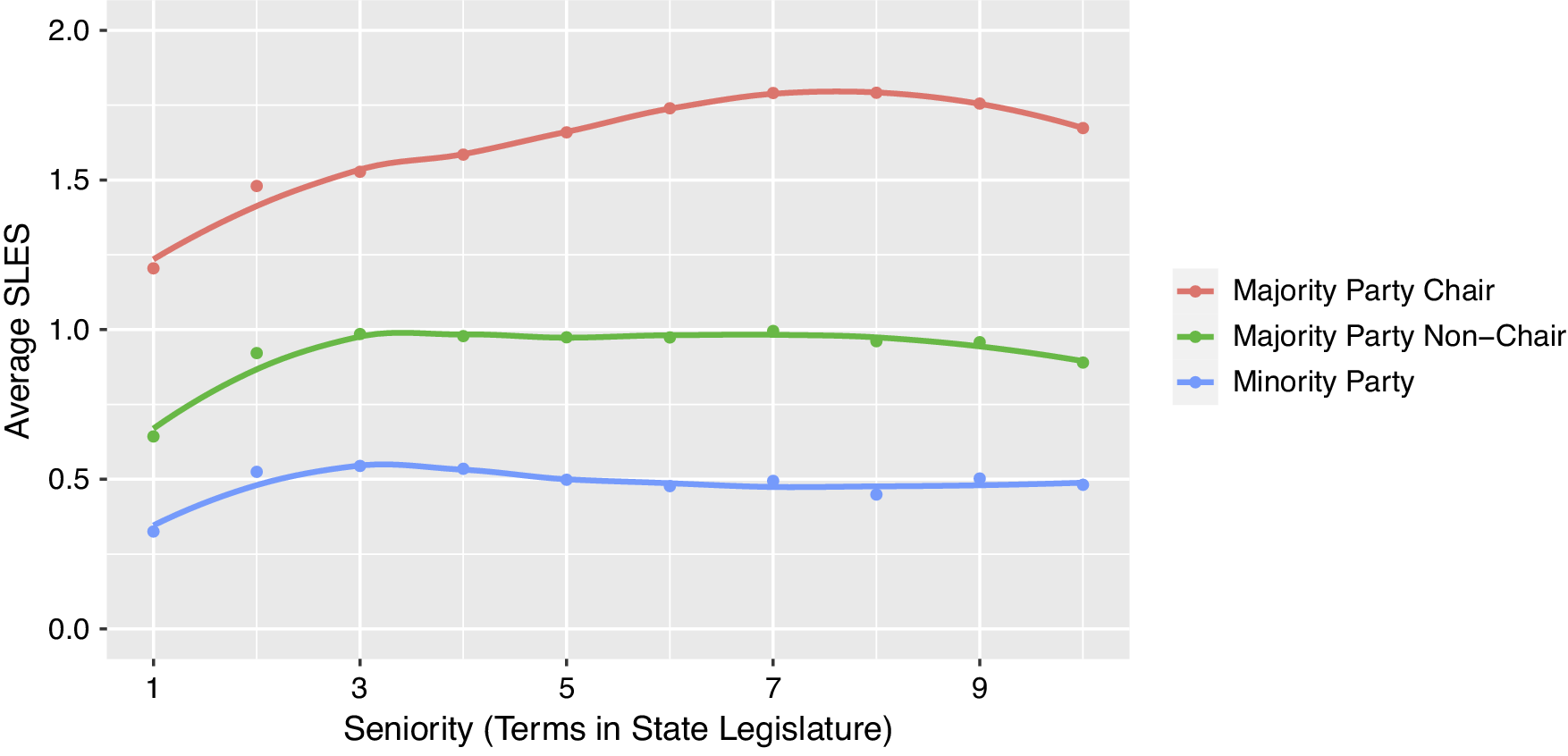 Figure 3. Majority Party, Chair, and Seniority SLES by Term