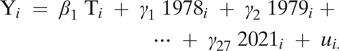 The second model allows for the possibility that the effects of the VDL diminish over time. Equation 2 includes an interaction term with