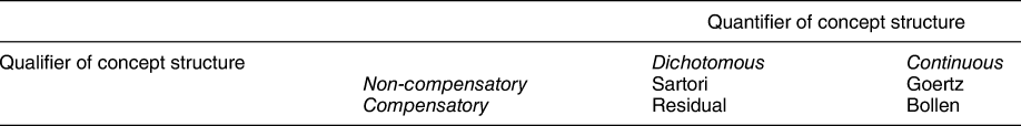 Gerring, John. 1999. “What Makes a Concept Good? A Criterial Framework for Understanding Concept Formation in the Social Sciences.” Polity 31 (3): 357–93.CrossRefGoogle Scholar