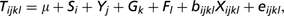 The effects of single genotypes on the traits studied were analysed by the least-squares method as applied in the general linear model (GLM) procedure of Statistical Analysis Systems Institute (SAS; 2000) according to the following statistical model: