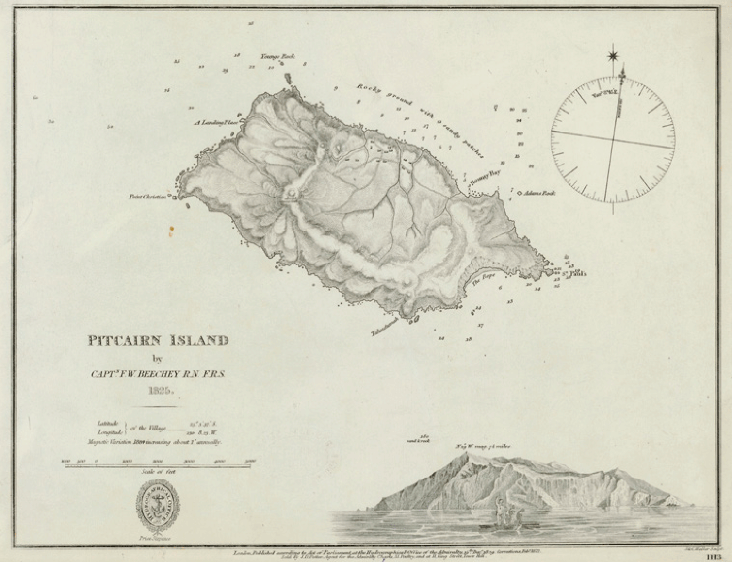 Figure 1. Nautical chart of Pitcairn Island in 1825, by Captain F. W. Beechey, RN FRS