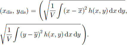 The dispersion of the deformable granular body can then be computed by the following (standard deviation) formula (where “dis” stands for dispersion):