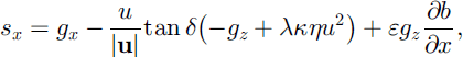The terms sx and sy represent the net driving accelerations in the downslope and cross-slope directions, respectively, and are given by