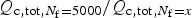 $Q_{{{\rm c,tot}},N_{{\rm f}}=5000}/Q_{{{\rm c,tot}},N_{{\rm f}} = x}$, for x shown in the description of the horizontal axes. Each blue box shows the interquartile range, the red lines mark the median value, and red crosses are outliers.