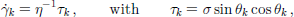 where τk is the resolved shear stress on the basal plane of the crystal k, σ is the compressive stress (assumed the same for all grains of the sample) and the material constant η–1 is the basal fluidity (viscosity–1) of the ice crystals. Hence, by recalling the assumed rotational symmetry of the micro-structure with respect to the vertical axis of compression, one can deduce from Equations (1) and (2) the evolution equation for θk: