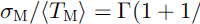 This distribution is characterized by the parameters T and β. In the following, we use instead the mean value 〈TM〉 and relative variance σM/〈TM〉 of the peak strengths, which are related to the Weibull parameters by