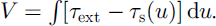 Solutions can be found for any value of the external shear stress in the range τ1 ≤ τext ≤ τm. A geometrical illustration is given in Figure 2: areas I and II enclosed by the line τ = τext above and below the τs(u) curve must be equal.
