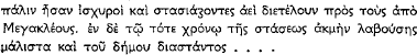 207 At first sight Thucydides seems to indicate an attempt of small dimensions, but note Hignett's suggestion of marriage connexions (op. cit. 87); what does Solon 12 mean: ![]()