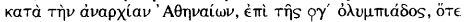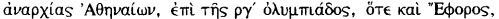 , ‘in the Athenians’ year of anarchy [i.e. 404 B.C.], during the 93rd Olympiad [i.e. 408-405 B.C.], just as Ephorus also'. Eudocia, p. 372 Flach (= Anecdota Graeca Villoison, I, p. 230) writes