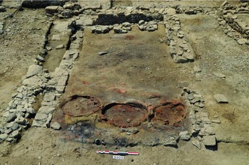 In sector 6, for the period 125–75 BC, excavations revealed three large, bell-shaped ovens in a row along the presumed eastern wall of the room, as well as a row of three stone bases along the western wall of the room, which were probably used for grinding flour(Figure 4).