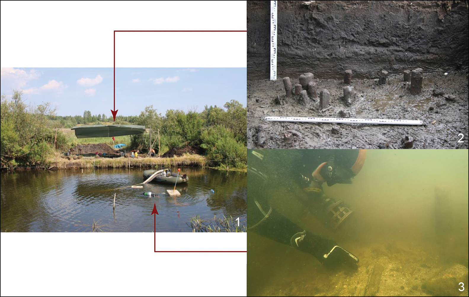 Figure 2. Pile-dwelling at Serteya II (photographs by A. Mazurkevich).