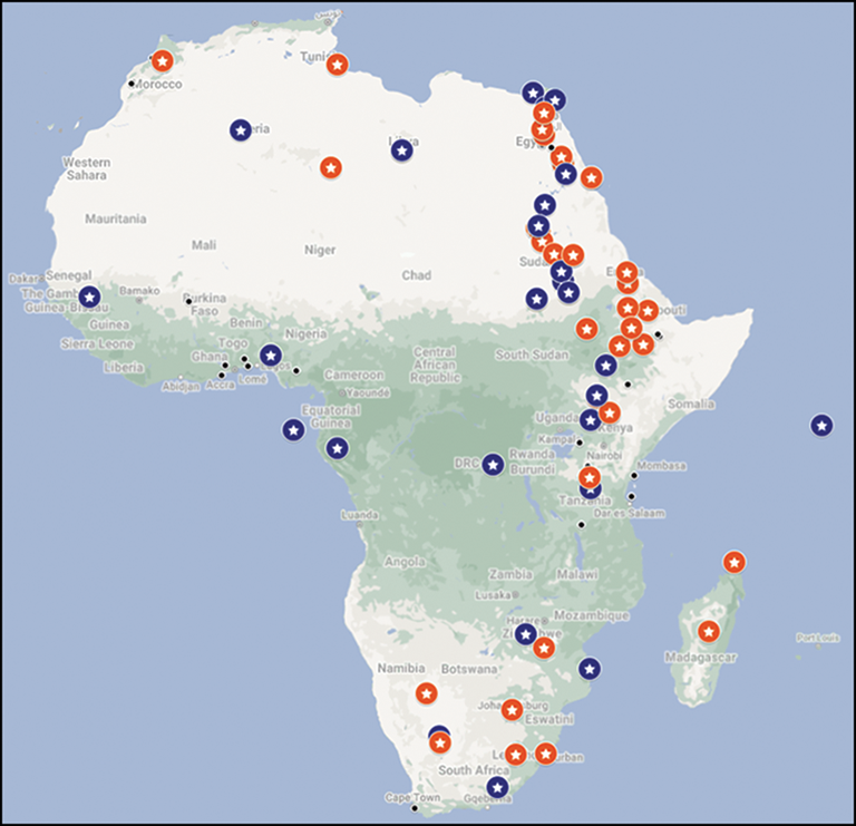 Many of the changes we have implemented over the past few years are small but signal important shifts in the nature of authorship or the use of language. For example, our style guide undergoes regular review to ensure that authors make use of appropriate and respectful language, including capitalising terms such as Black and Indigenous, and encouraging authors to avoid making assumptions about gender. Such changes are easy wins, but what about some of the bigger, systemic challenges, such as attracting more submissions on, and from, regions of the world that are under-represented in the pages of Antiquity? The question is not unique to this journal. For instance, in the past couple of years, the African Archaeological Review and the Journal of Archaeological Science have published analyses of the geographical focus of published content.Footnote 7 Notably, these studies reveal near identical distributions of research on African archaeology as that published in Antiquity: all three journals show concentrations that extend from Egypt south through East Africa, with a hotspot in southern Africa and a thin scatter across the rest of the continent (Figure 2).