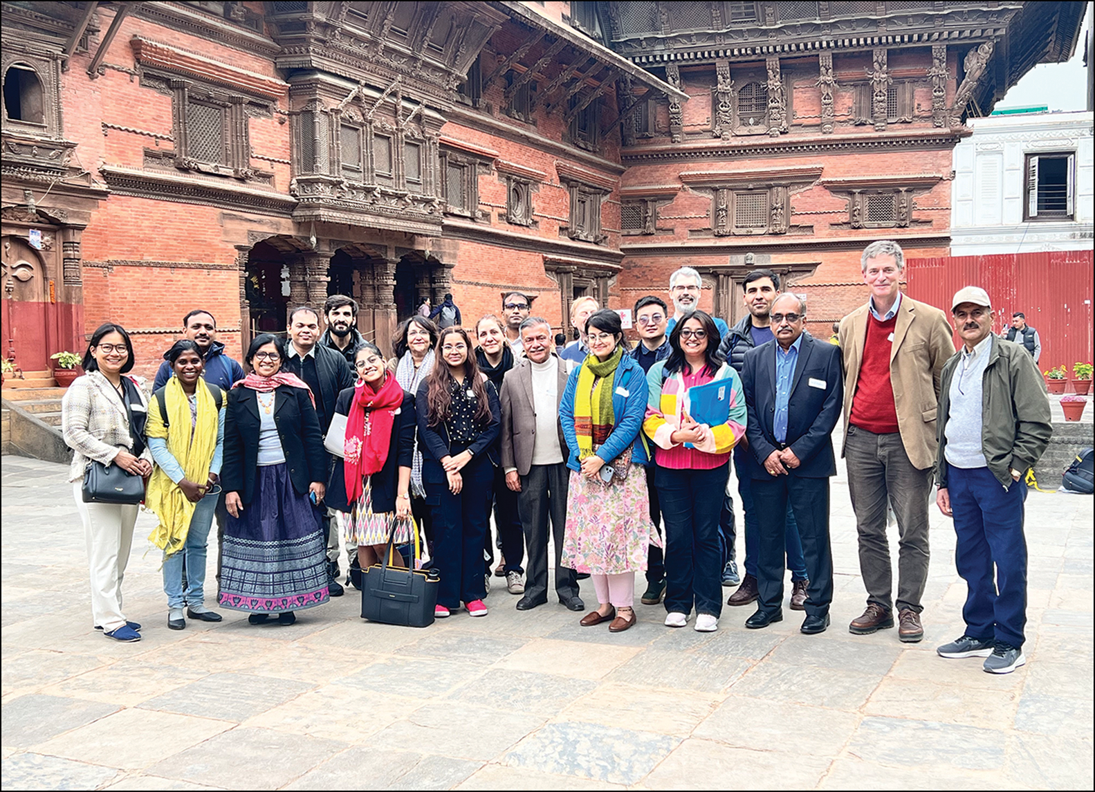 Figure 3. Early career researchers and mentors at the Rewriting World Archaeology: South Asia workshop, visiting the Hanuman Dhoka complex in Kathmandu, March 2024. Photograph by A. Kaspari-Marghussian.