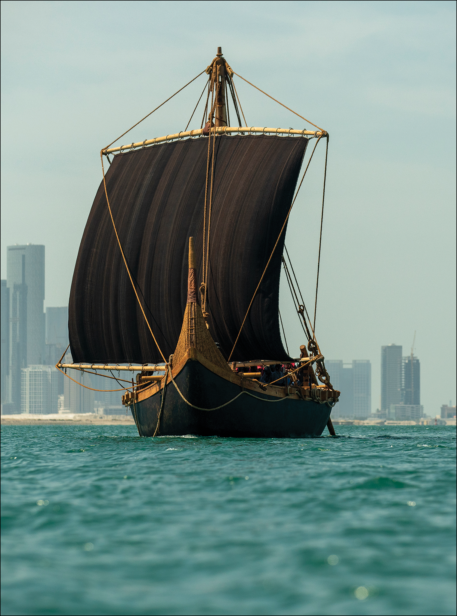 Frontispiece 2. An 18m-long reconstruction of a Bronze Age ship undergoing sea trials off the coast of Abu Dhabi, UAE, in 2024. The vessel was built by shipwrights using traditional tools to a design based on information from Sumerian cuneiform tablets and ancient representations of boats typical of the land of Magan (modern-day Oman and the UAE). The hull of the wooden-framed vessel is made of 16 tonnes of reeds lashed together with palm-fibre rope and coated in bitumen; the sail is made of goat hair. During testing, the vessel reached speeds of 5.6knots. The ‘Magan Boat’ is the result of a collaboration between the Zayed National Museum, New York University Abu Dhabi and Zayed University. Photograph by E. Harris © Zayed National Museum.