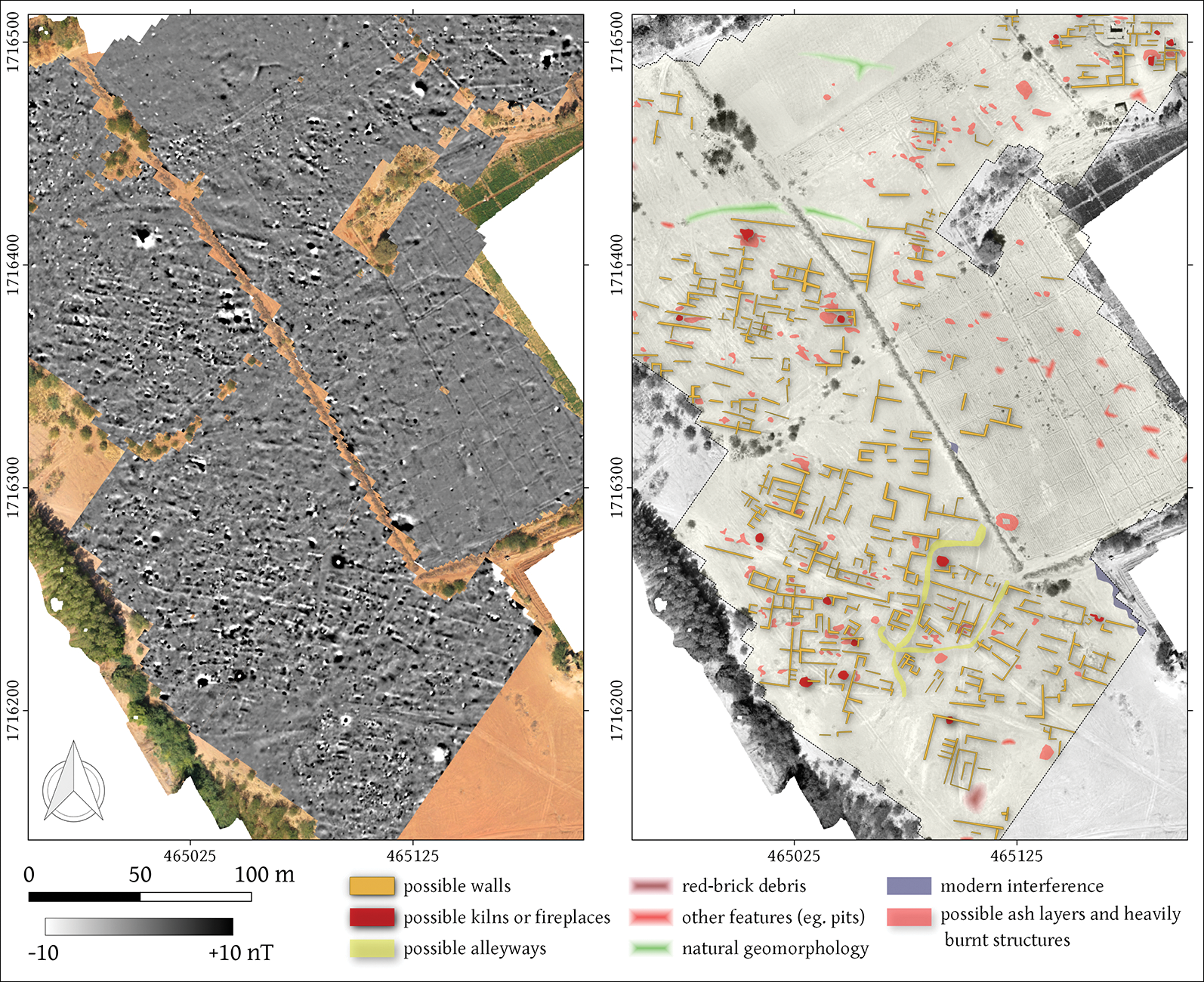 Figure 5. Geophysical survey in Area F: magnetic data and interpretation (prepared by R. Ryndziewicz).