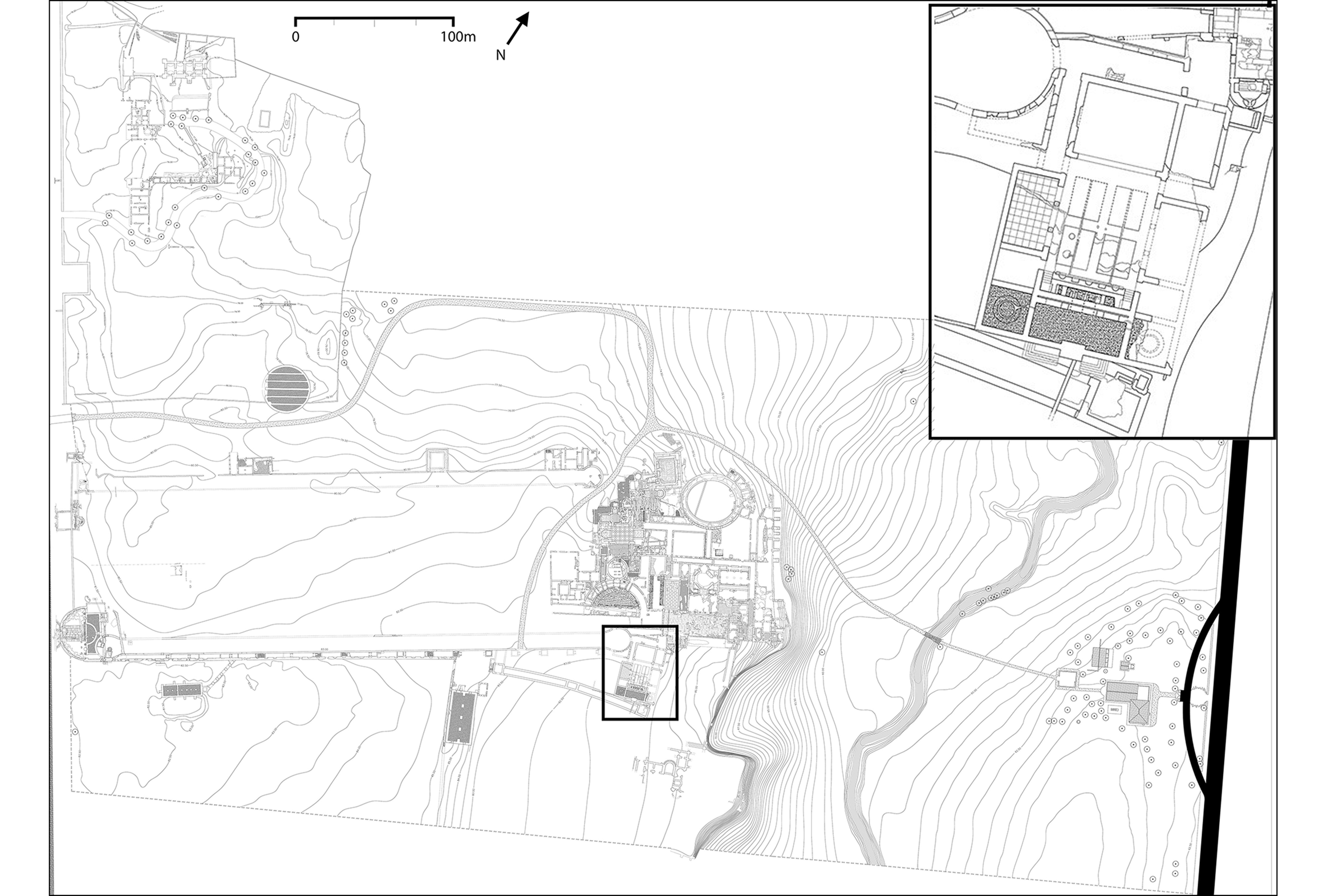 Archaeological excavations in 2017 and 2018 focused on the investigation of the two parallel curved walls of the circus carceres (starting gates) and towers. Brick stamps and the building technique date these structures to the reign of Commodus (r. AD 177–192). In the search for the second eastern tower, excavation revealed the first evidence for the winery, which had been partially constructed over the demolished tower (Figure 1, inset; Figure 2). Further investigation revealed a large brick-built complex (43 × 25m), which, following abandonment, had been dismantled and the site levelled with mixed construction debris, mortar and ceramics.