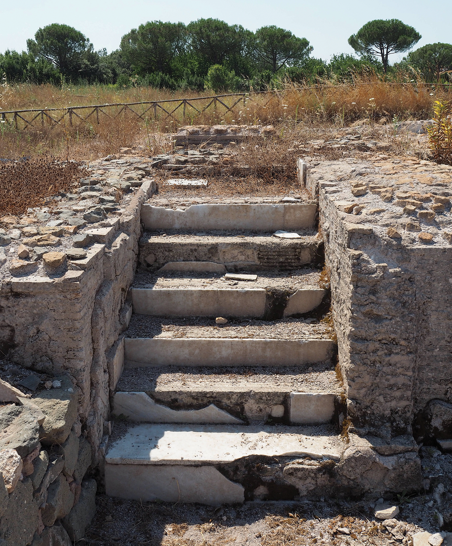 Figure 5. North-eastern staircase, with marble facing still intact, leading up from the cella vinaria to the treading and press areas (photograph by E. Dodd).