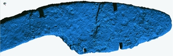X-radiography and investigative conservation revealed a second feature of diagnostic relevance: an 8mm-diameter circular perforation adjacent to the cutting edge of the blade (Figure 5). Although unparalleled on other early medieval coulters from the British Isles, this feature is attested on the Continent during this period, and may have facilitated the connection of a chain between the plough-beam and the coulter (Henning 2009: 153–56).