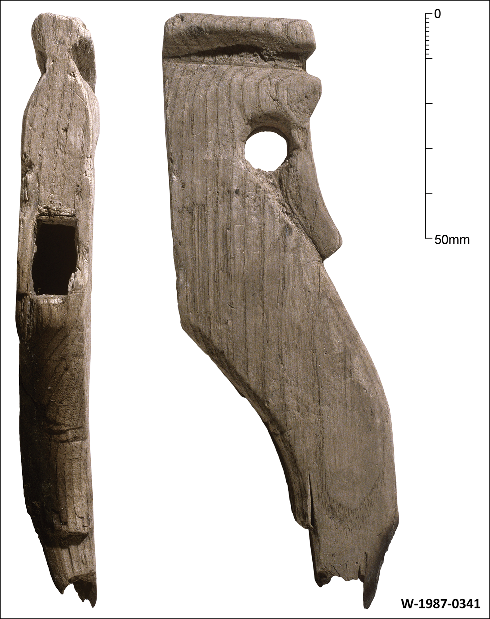 Figure 5. Ash wood framesaw handle (W-1987-0341) from Vindolanda, indicating wear of the handle through use (photographs by R. Sands).