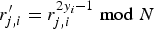 $r^\prime _{j,i} = r^{2y_i-1}_{j,i} \bmod N$ and
