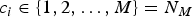 $c_{i} \in \{1,2,\ldots,M\} = N_{M}$